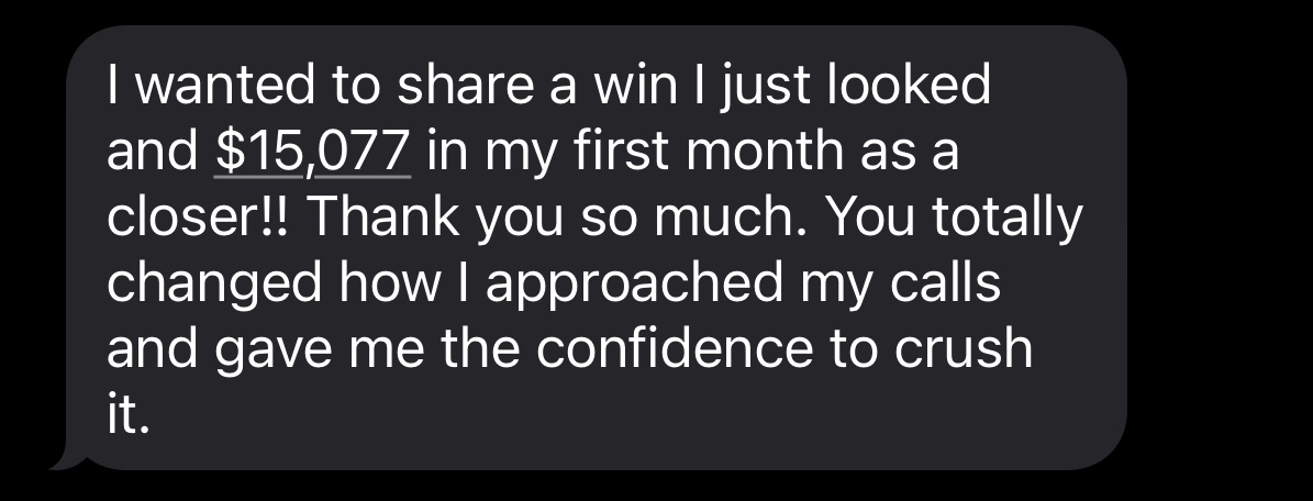 60%+ CLOSER. MULTI–8 FIGURE CASH COLLECTED. I TEACH REAL SALES SKILLS THAT TURN “HARD WORKERS” INTO HIGH TICKET RAINMAKERS.
